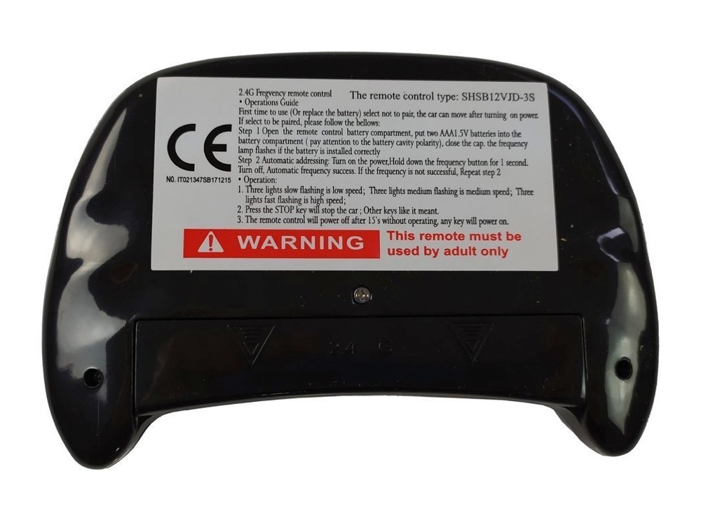 Let op: U kunt niet zomaar een willekeurige 2.4 GHz afstandsbediening koppelen aan uw kinderauto. U dient dus de juiste afstandsbediening dat bij uw kinderauto hoort te bestellen.