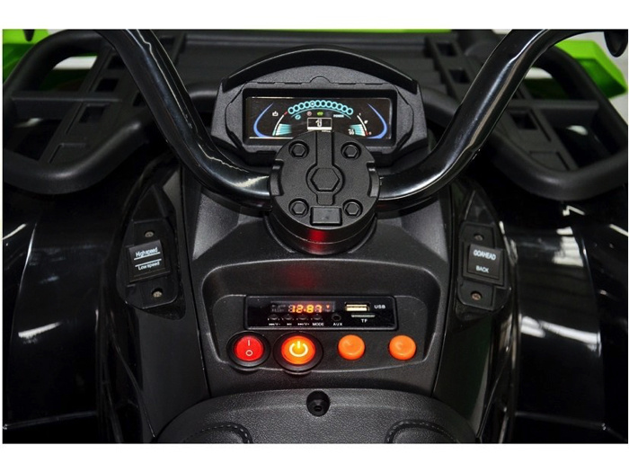 Deze grote kinder quad is voorzien van 2 krachtige 24 volt aandrijvingen en rijdt tot 8 km per uur. De snelheid is instelbaar op zowel 4 als 8 km per uur. Deze super stoere quad heeft volledig rubberen banden, geveerde wielen, led verlichting, toeter & muziek knopjes, MP3, mini SD en USB reader.