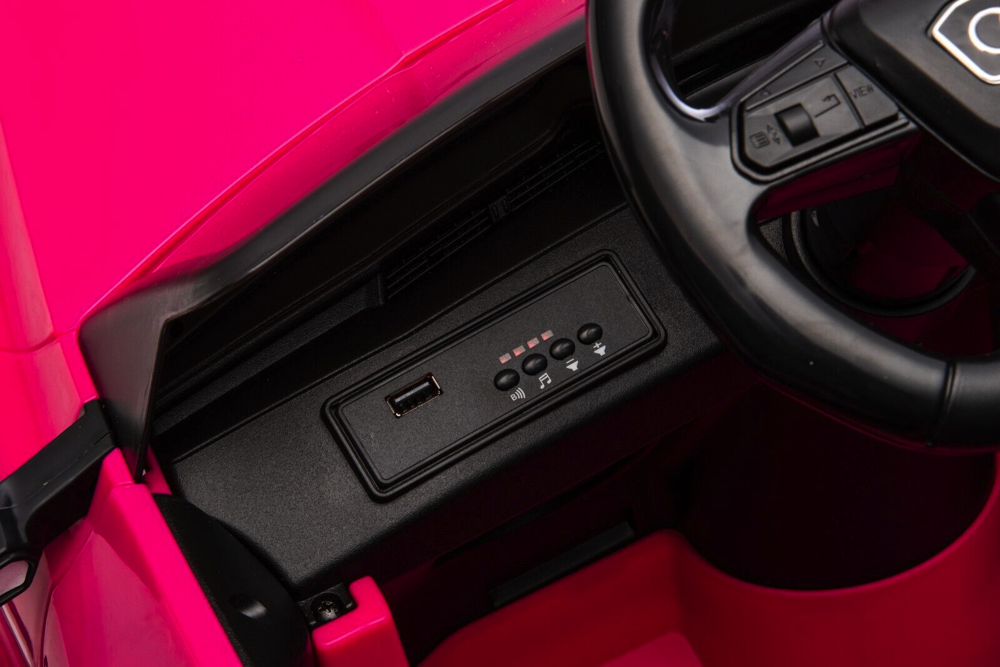 Het design van de Audi S Q8 is zowel sportief als elegant, met realistische LED-verlichting in de koplampen en achterlichten, wat zorgt voor een authentieke uitstraling, zowel overdag als ’s avonds. Bij het starten van de auto klinken realistische motorgeluiden, wat de rijervaring nog leuker maakt. Bovendien is de kinderauto voorzien van een muziekmodule met een USB-ingang, zodat jonge bestuurders tijdens het rijden kunnen genieten van hun favoriete nummers.