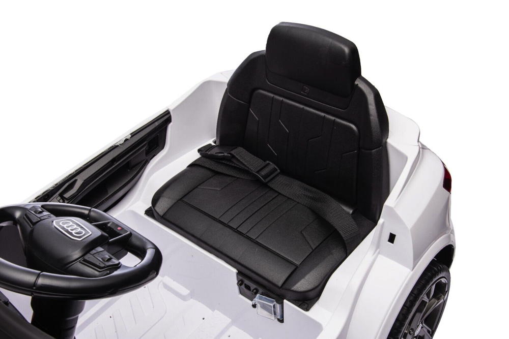 Voor extra comfort en veiligheid is deze Audi S Q8 uitgerust met hoogwaardige EVA-banden die zorgen voor een goede grip op verschillende ondergronden, terwijl het kunstlederen zitje een comfortabele rijervaring biedt. De veiligheidsgordel houdt de jonge bestuurder goed beschermd tijdens het rijden. Het soft start-systeem zorgt ervoor dat de auto geleidelijk op snelheid komt, waardoor schokkerige starts worden vermeden. Daarnaast wordt de elektronische rem automatisch geactiveerd zodra het gaspedaal wordt losgelaten, wat extra veiligheid garandeert.