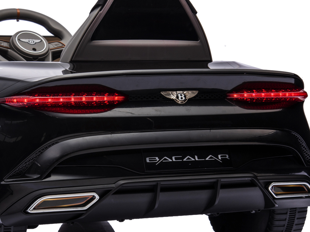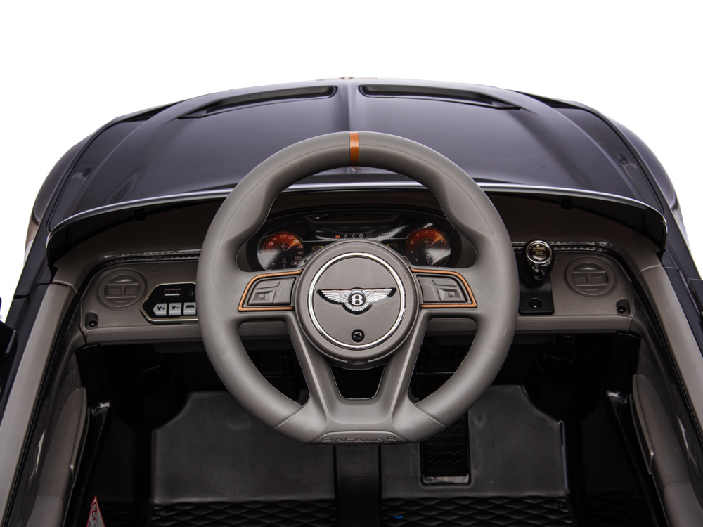 Met een krachtige 12 volt 7Ah accu en vier 12 volt motoren, één motor op ieder wiel, biedt de Bentley Bacalar een krachtige en soepele aandrijving. Met 3 verstelbare snelheden tot 5 km per uur. Dankzij de ‘soft start‘ functie rijdt de auto rustig weg zonder schokken. Bovendien kan de Bacalar zowel vooruit als achteruit rijden en beschikt het over een elektronisch remsysteem dat automatisch remt wanneer het gaspedaal wordt losgelaten, voor extra veiligheid.