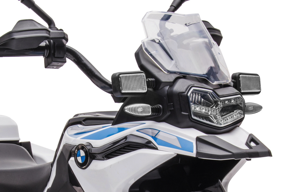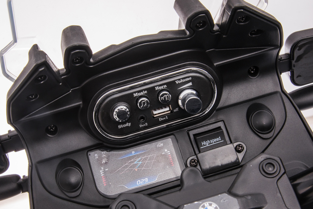 Deze BMW F850 GS is tot in detail ontworpen met LED-verlichting voor- en achter, een knipperend sirenelampje en een authentiek motorgeluid bij het starten. De ingebouwde toeter en sirene versterken de realistische beleving, terwijl de muziekmodule met MP3- en USB-aansluiting kinderen de mogelijkheid geeft om hun eigen favoriete muziek af te spelen. Het volume is eenvoudig verstelbaar, zodat het geluid altijd aangenaam blijft.
