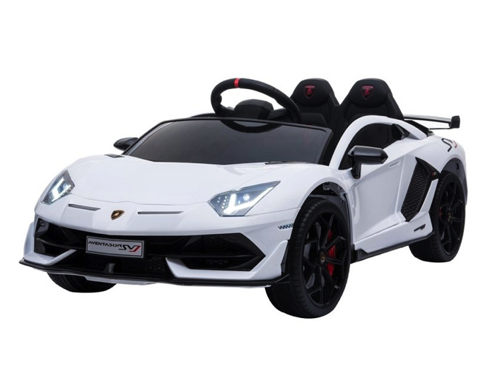 Deze uiterst sportieve kinderauto is geproduceerd onder licentie van Lamborghini. De Aventador SVJ accu auto is het nieuwste model van Lamborghini. Deze is voorzien van dubbele 12 volt aandrijvingen en rijdt met 3 verstelbare snelheden tussen de 3 en 6 km per uur. Verder heeft deze prachtige accu voertuig echte Lamborghini deuren, leder zitje, volledig rubberen banden, geveerde wielen voor extra comfortabel rijden, USB-, Mini SD- en MP3-ingang, ledverlichting en meer. Met de “soft start” functie voelen kinderen geen schokje bij het optrekken. De snelheid wordt stapsgewijs opgevoerd. Op de 2.4 GHz afstandsbediening kunt u de kinderauto besturen, snelheid instellen en de auto op afstand pauzeren als het moet.