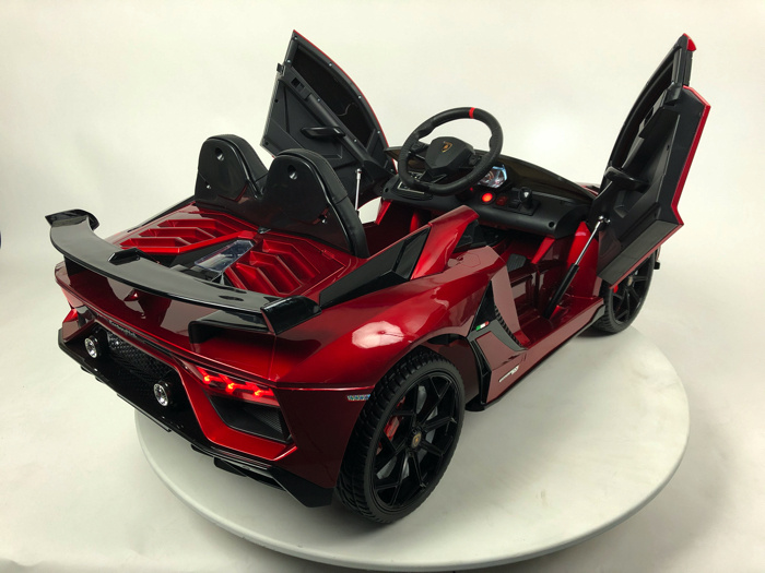 Deze uiterst sportieve kinderauto is geproduceerd onder licentie van Lamborghini. De Aventador SVJ accu auto is het nieuwste model van Lamborghini. Deze is voorzien van dubbele 12 volt aandrijvingen en rijdt met 3 verstelbare snelheden tussen de 3 en 6 km per uur. Verder heeft deze prachtige accu voertuig echte Lamborghini deuren, leder zitje, volledig rubberen banden, geveerde wielen voor extra comfortabel rijden, USB-, Mini SD- en MP3-ingang, ledverlichting en meer. Met de “soft start” functie voelen kinderen geen schokje bij het optrekken. De snelheid wordt stapsgewijs opgevoerd. Op de 2.4 GHz afstandsbediening kunt u de kinderauto besturen, snelheid instellen en de auto op afstand pauzeren als het moet.