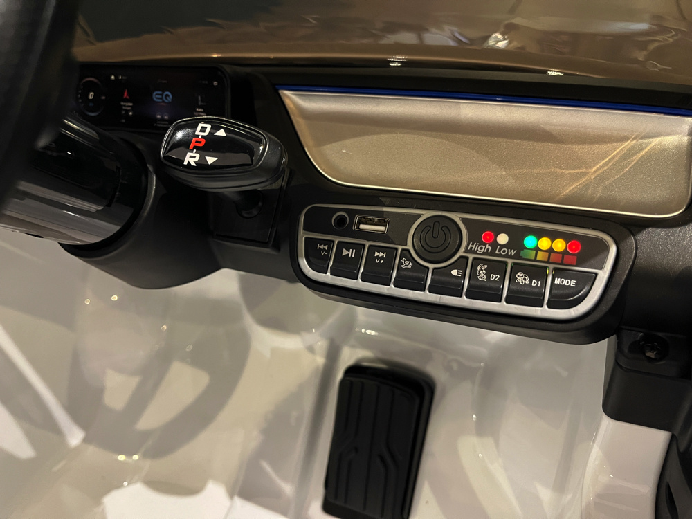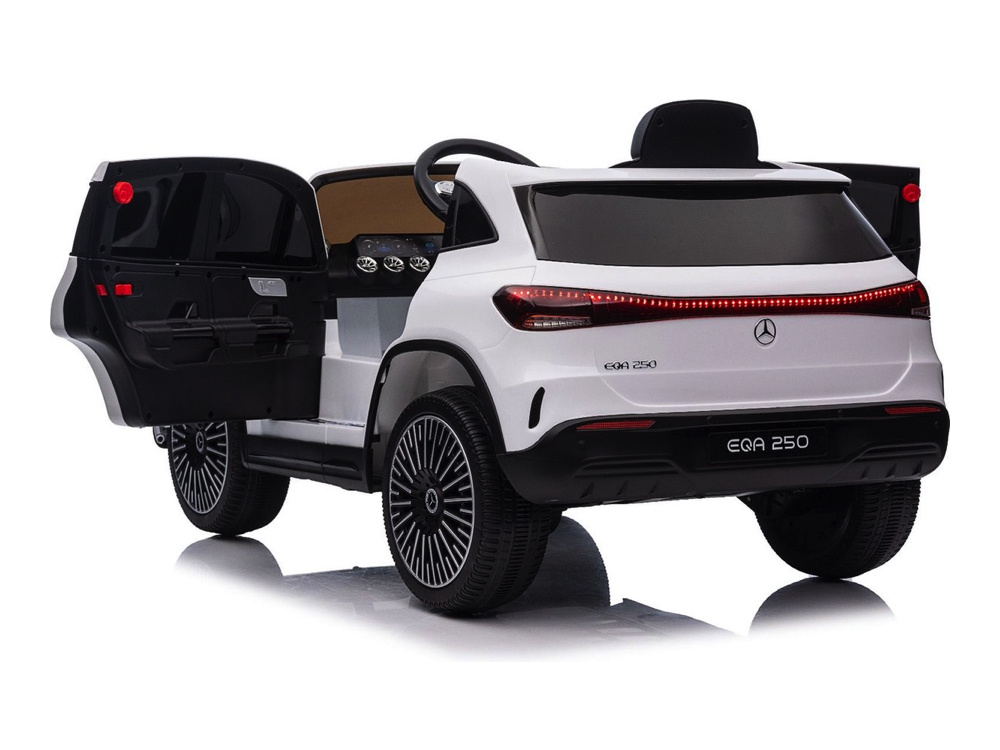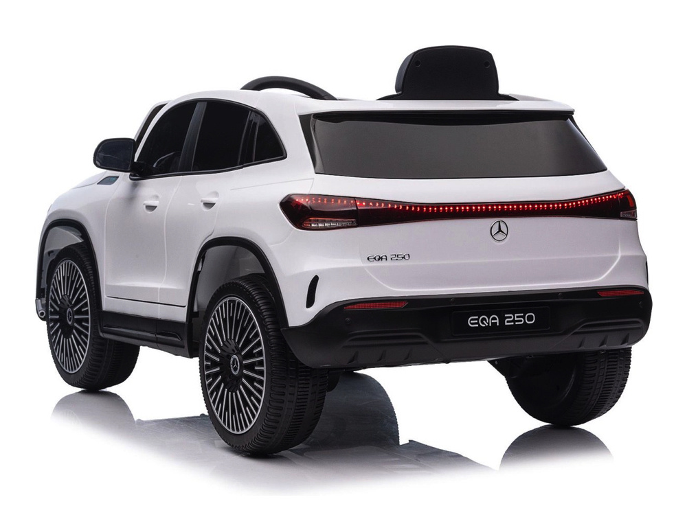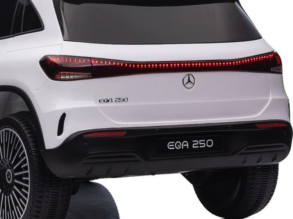 Met een krachtige 12 volt 7Ah accu en vier 12 volt 25 watt motoren, één motor op ieder wiel, biedt de Mercedes-Benz EQA 250 een krachtige en soepele aandrijving. Dankzij de ‘soft start‘ functie rijdt de auto rustig en geleidelijk weg, zonder schokken. Bovendien kan de EQA 250 zowel vooruit als achteruit rijden en heeft het een elektronisch remsysteem dat automatisch remt wanneer het gaspedaal wordt losgelaten, voor extra veiligheid.