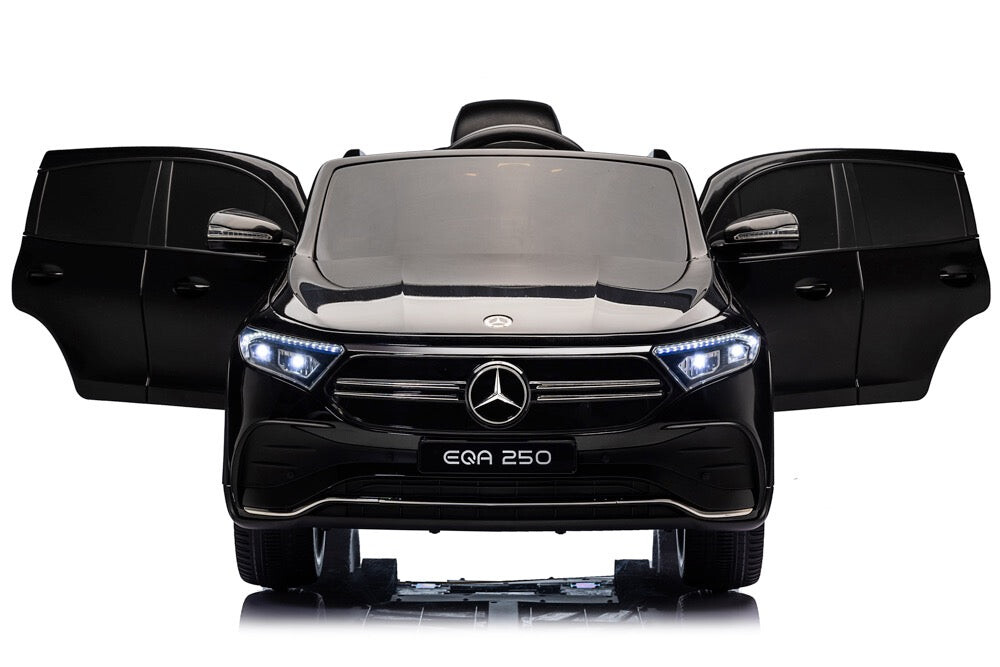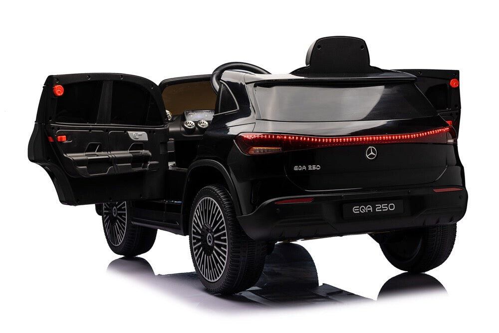 Mercedes-Benz EQA 250, muziekmodule, leren stoel, EVA rubberbanden (XMX625) Vermogen/accu: 12 volt 7Ah accu Motor: 4x 12 volt 25 watt motoren, een motor op elk wiel Rijden: 3 instelbare snelheden tot 5 km per uur, rijdt zowel vooruit als achteruit met ‘soft start’, werkt met het gaspedaal en met de afstandsbediening, elektronische rem wanneer het gaspedaal wordt losgelaten Verlichting: Led-verlichting: koplampen en achterlichten Muziek / Multimedia: Startmotorgeluid, claxon en muziekknoppen, muziekmodule met stories, MP3-, USB-ingang en Bluetooth om je eigen muziek af te spelen, volume is regelbaar, accu-indicator Bijzonderheden: 2 deuren, rubberen EVA banden, kunstlederen stoel met veiligheidsgordel, achterwielen geveerd, hoogglans gelakt Afstandsbediening: 2,4 GHz afstandsbediening met instelbare snelheden en pauzeknop Opladen & speeltijd: 8 uur opladen, 60-90 minuten speeltijd op een vlakke weg Inbegrepen: Afstandsbediening, batterij en oplader Aantal zitplaatsen: 1 zitplaats Geschiktheid: Voor kinderen tot 5 jaar tot 30 kg Afmetingen product: 111,5 x 69 x 52,5 cm ( lengte x breedte x hoogte ) Afmetingen verpakking: 115 x 63 x 33 cm ( lengte x breedte x hoogte ) Let op: als gevolg van het fabricageproces kunnen er vlekken, krassen, stippen of schrammen op het elektrische speelgoed zitten. Soms zijn onderdelen niet 100% naad-op-naad afgewerkt. Dit komt vaak voor en geldt voor alle modellen, ongeacht waar je ze koopt.