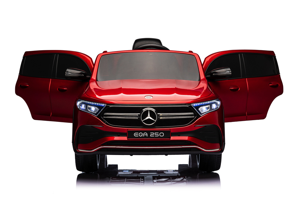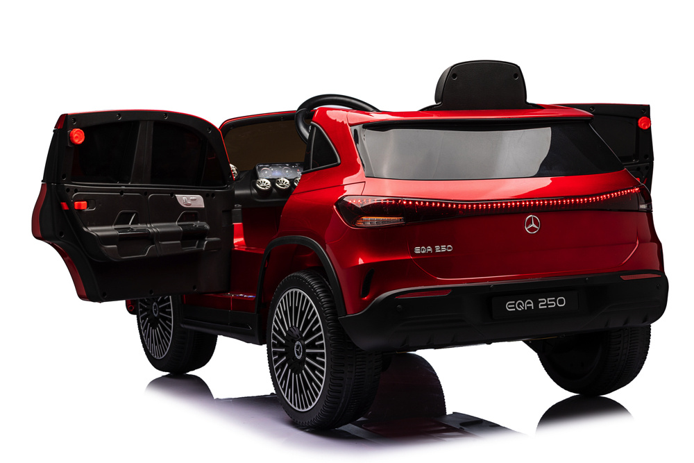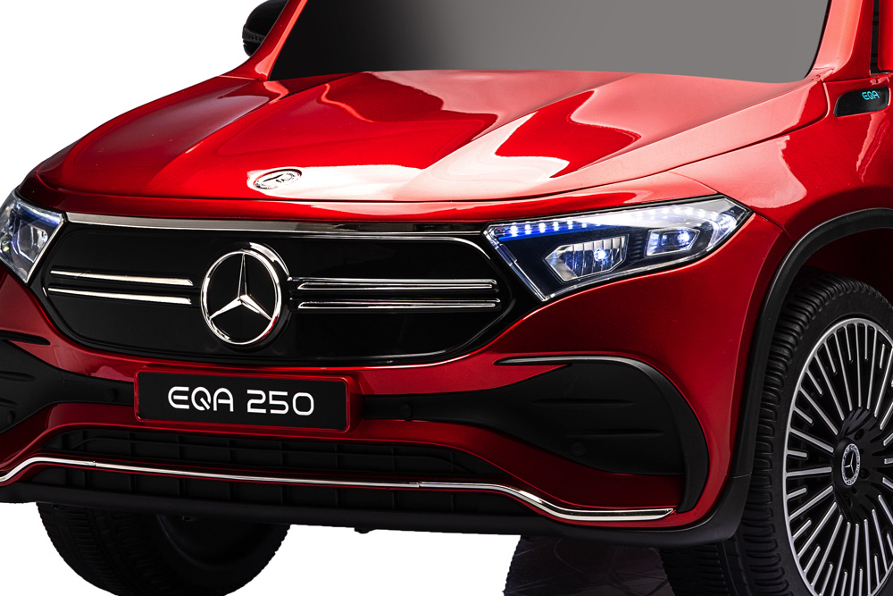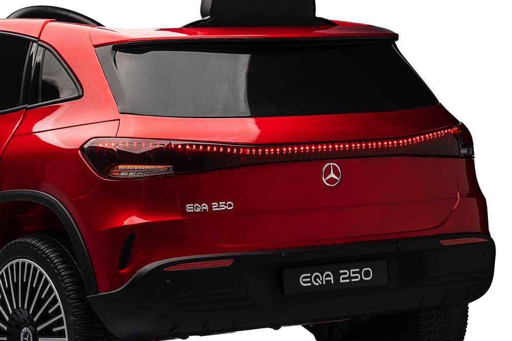 Met een krachtige 12 volt 7Ah accu en vier 12 volt 25 watt motoren, één motor op ieder wiel, biedt de Mercedes-Benz EQA 250 een krachtige en soepele aandrijving. Gewenste snelheden tot 7 km per uur. Dankzij de ‘soft start‘ functie rijdt de auto rustig en geleidelijk weg, zonder schokken. Bovendien kan de EQA 250 zowel vooruit als achteruit rijden en heeft het een elektronisch remsysteem dat automatisch remt wanneer het gaspedaal wordt losgelaten, voor extra veiligheid.