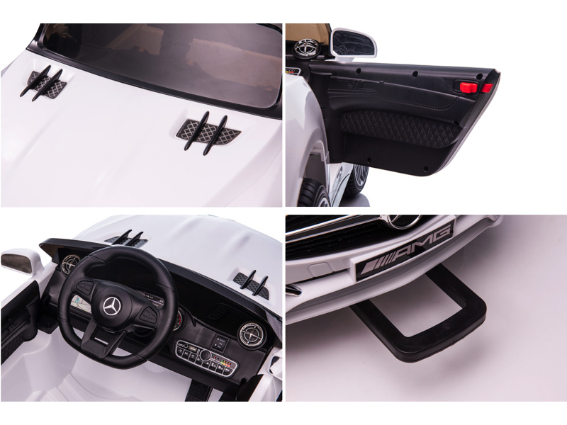 De nieuwste model Mercedes-Benz SL65 is iets compacter uitgevoerd dan zijn voorganger uit 2019. Daarmee is het praktischer in gebruik. De Mercedes SL65 is een prachtige replica van de echte AMG versie. Deze kinderauto is voorzien van 2x 12 volt motoren en rijdt tussen de 3 als 5 km per uur. De Mercedes kinderauto is voorzien van volledig rubberen banden, geveerde wielen en een kunstleder zitje. Overigens heeft het kleine voertuig ook 2 echte deuren, veiligheidsgordel, ledlampen, toeter, muziek knopjes en USB-, en MP3 ingang om eigen muziek af te spelen. Dankzij de ‘soft start’ functie voelen kinderen geen schokje bij het optrekken. De snelheid wordt geleidelijk opgebouwd.
