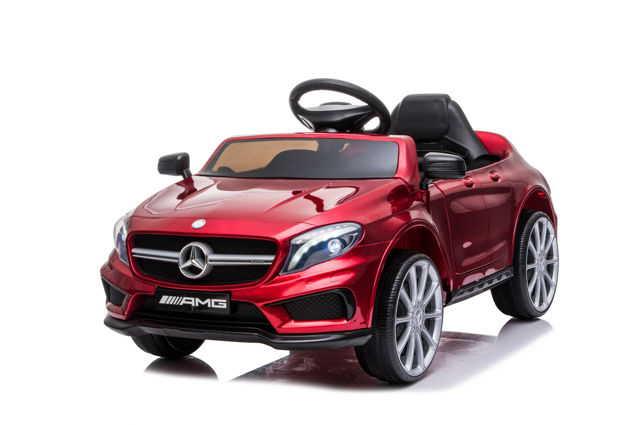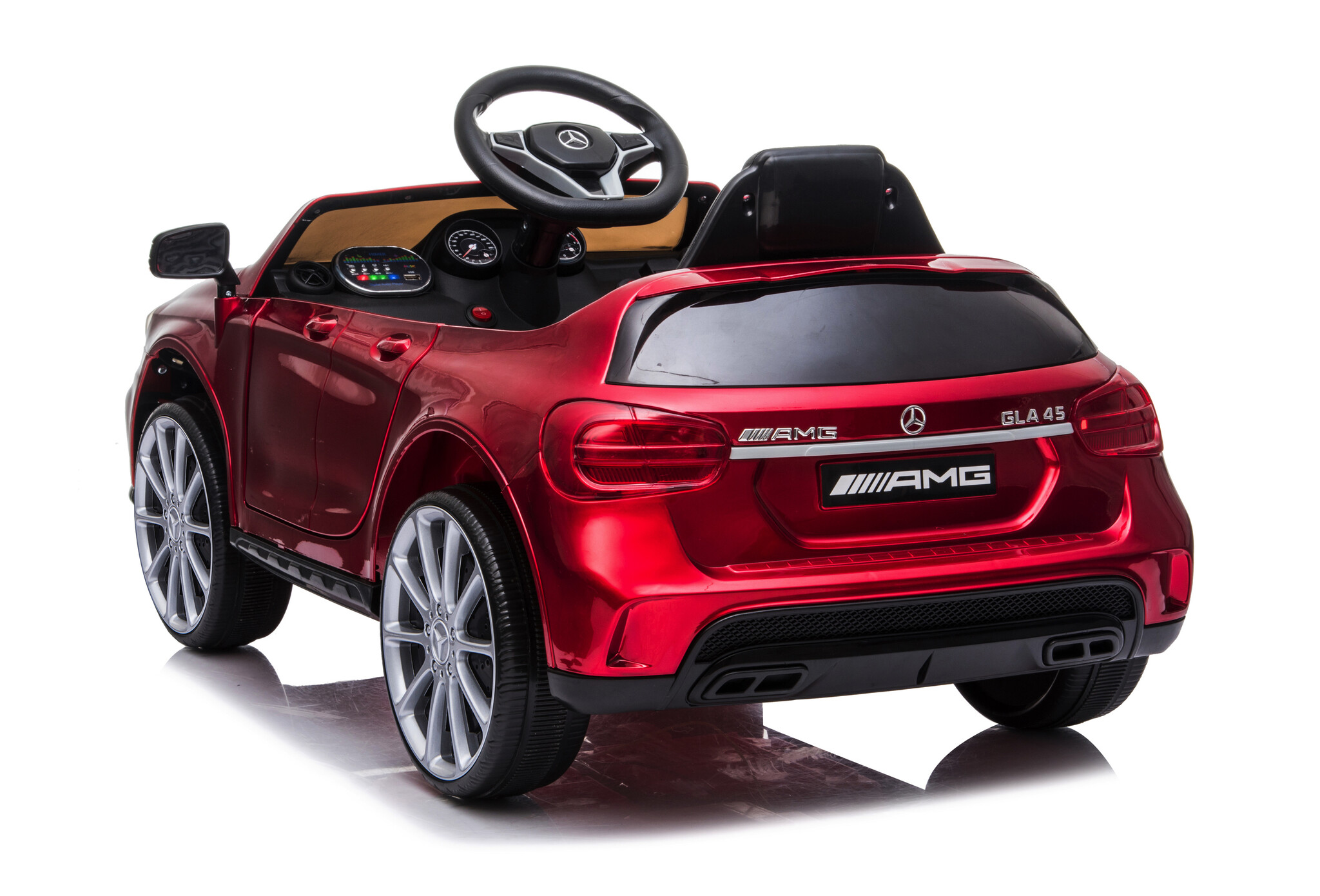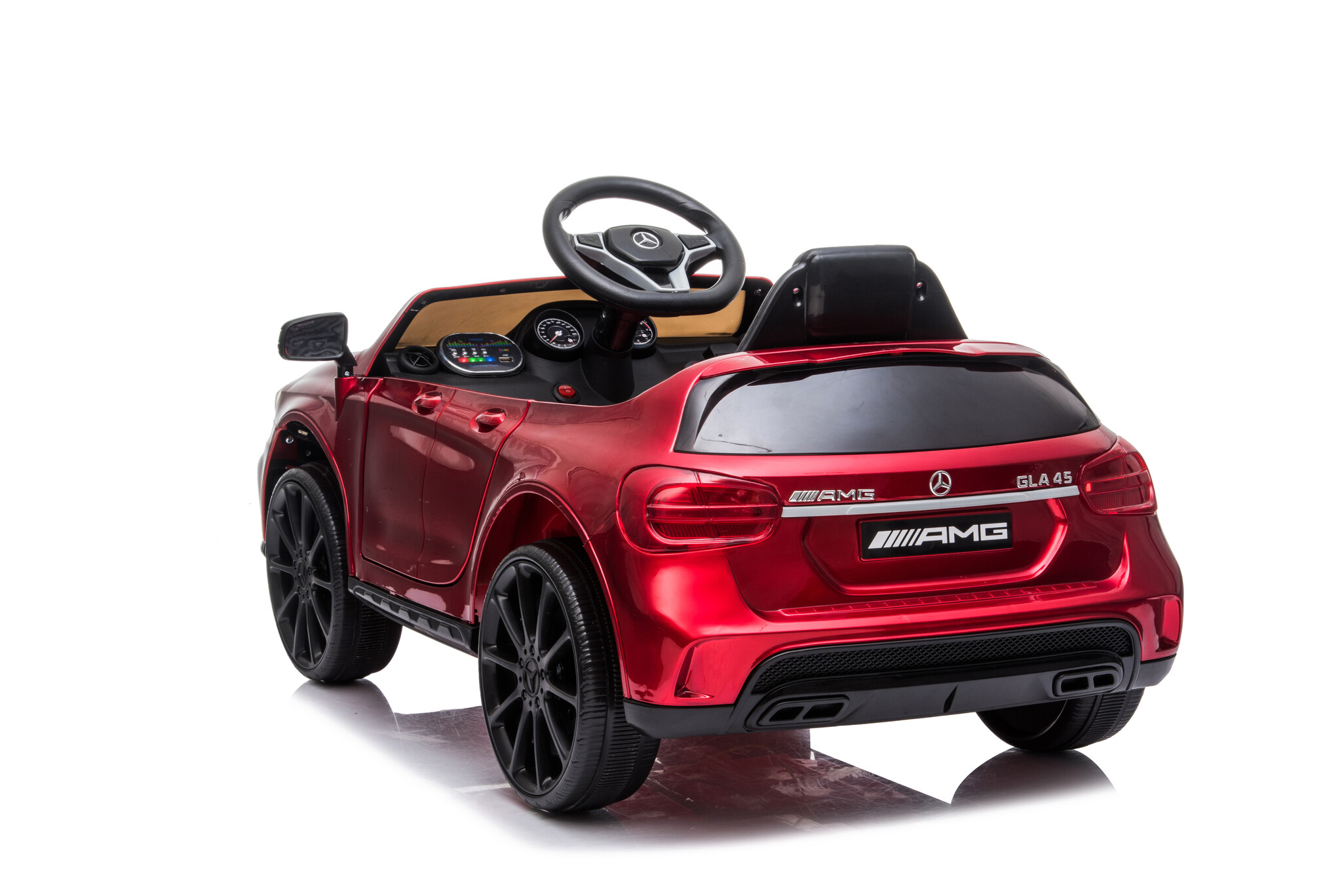Deze kleine Mercedes GLA45 is prachtig en uiterst sportief. De Mercedes accu voertuig is een mooie replica en geproduceerd onder licentie van Mercedes. Deze 12 volt kinder accu auto is voorzien van 2 aandrijvingen op beide achterwielen en heeft verstelbare snelheden tussen de 2 en 4 km per uur. De kleine Mercedes is voorzien van ledverlichting, muziek, USB, MINI SD en mp3 ingang, kunstleder zitje, volledig rubberen banden, 2 echte deuren en veel meer! Met de ‘soft start’ functie zal de auto de snelheid rustig opbouwen. Uw kind voelt dus geen schokje bij het optrekken.