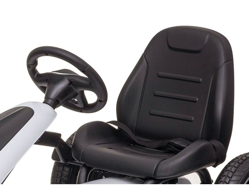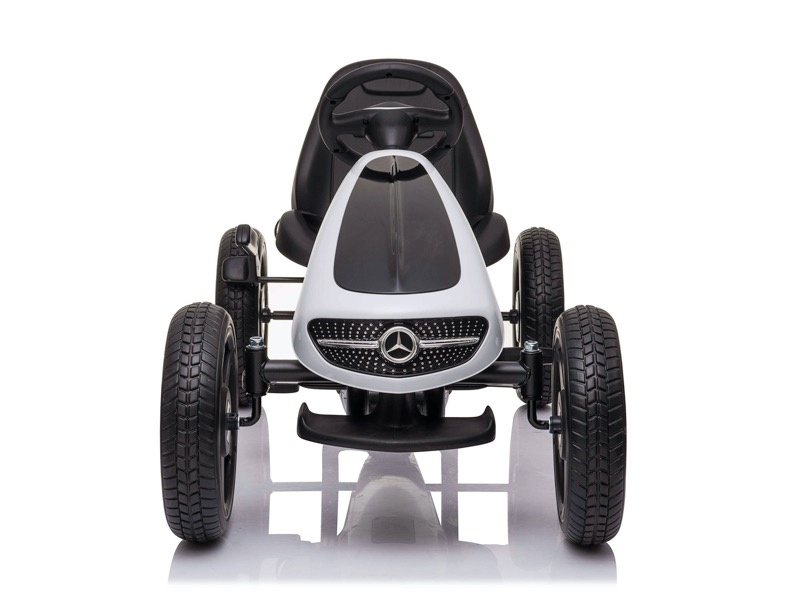 De MERCEDES Go-Kart is voorzien van rubberen banden en handrem.