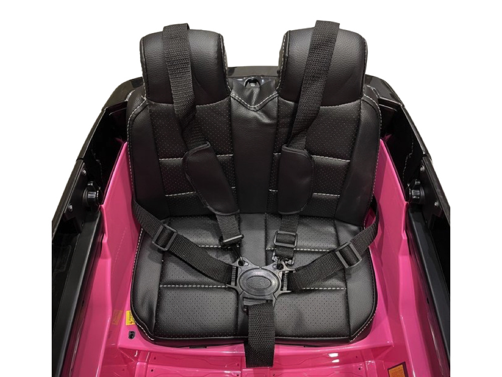 Verder is kinderauto voorzien van een leder zitjerubberen banden, geveerde wielen2 echte deuren, werkende LED-lampen, dashboard verlichting, USB- MP3- en mini SD-ingang om eigen muziek af te spelen.